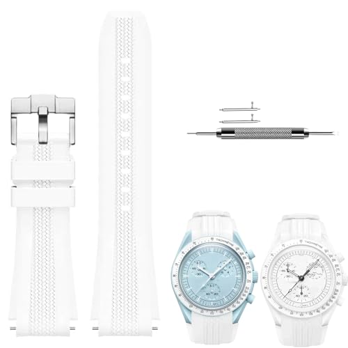 JVEIWAD Bracelet de montre incurvé en caoutchouc, compatible avec Omega X, compatible Swatch Moonwatch, for Seamaster 300 Sport, étanche, TPU, 20 mm(White)