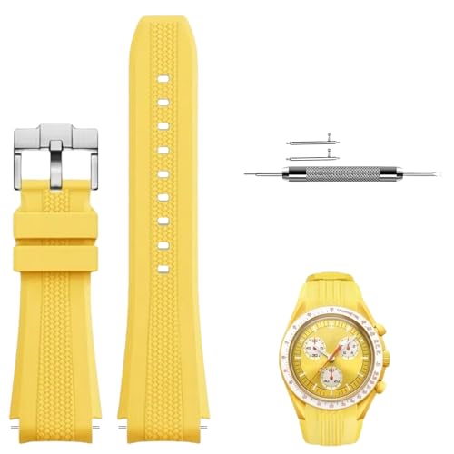 Miimall Bracelet en Silicone pour Omega x Swatch MoonSwatch Speedmaster - Rechange Ajustement Respirant pour Moonwatch (Jaune)