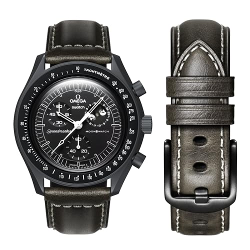 Bracelet en cuir pour montre Omega Swatch Moonwatch, compatible avec montre Omega X Swatch de 20 mm, rapidement Realese Swatch Omega Moonswatch, pour homme et femme (pour montre de 20 mm, noir)