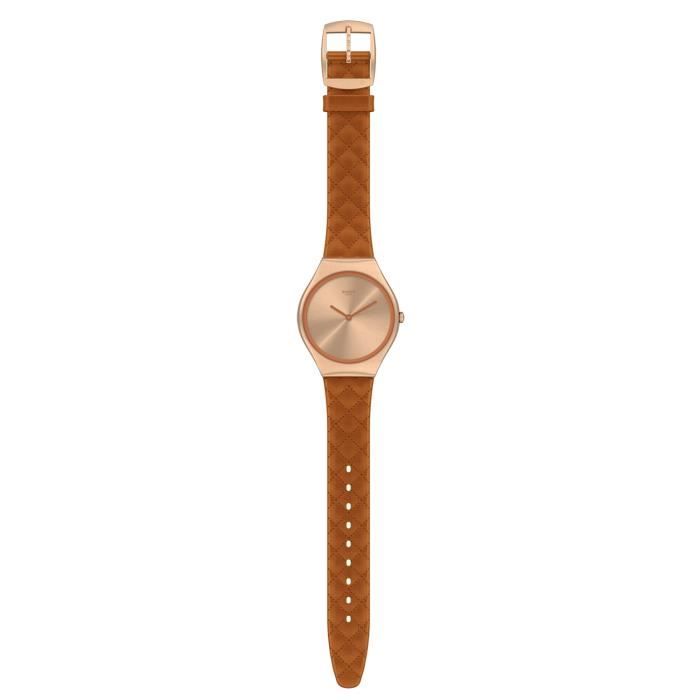 Montre femme - SWATCH - Brown Quilted (Skin Irony) - Boîtier 38 mm - Cuir matelassé marron - Mouvement Quartz Swiss Made