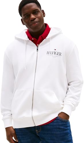 Tommy Hilfiger Sweat à Capuche avec Fermeture Éclair Homme Stacked Hooded en Coton, Blanc (White), 5XL