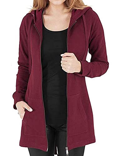 Aottori Sweat à Capuche Femme Cotton Sweatshirt avec Poches Zippé Hoodies Veste de Sport Blousons Casual Printemps Automne Rouge foncé XXL