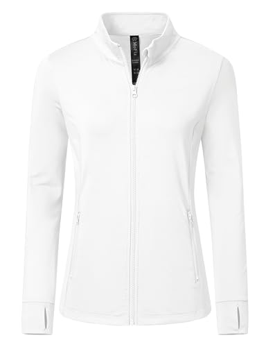 MoFiz Veste Sport Femme Veste Running Femme Polaire Chaude Veste Légère Sweat Zippé Blanc-B L
