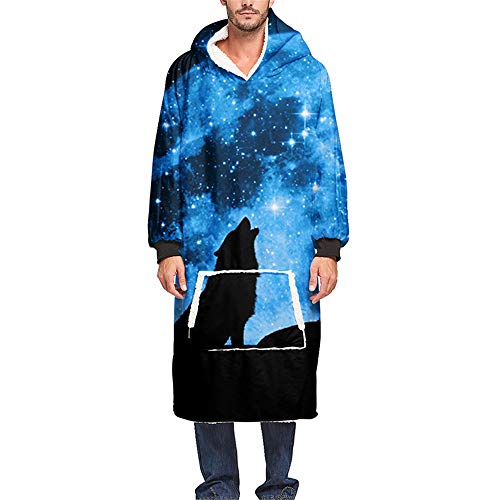 Sweat à Capuche Couverture, Loup Animal Mode 3D Imprimé Couverture avec Manches et Poche Chaud Doux Robes de Chambre Hoodie Paresseux TV pour Adultes Homme et Femme (Taille Unique,Star Wolf)