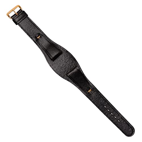 Dcasmo group Bracelet de Montre en Cuir Legitima Noir pour Homme 18 mm New Old Stock 1960 1970 - Sweat Militaire Vintage Original - Strap Bracelet de Montre Antique Traditionnelle