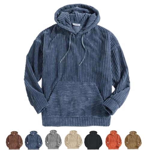 QKCQQTS Sweat à Capuche en Velours côtelé pour Homme, Sweat-Shirt à Capuche Vintage avec Cordon de Serrage, Pull à Capuche Vintage en Velours côtelé (Blue,L)