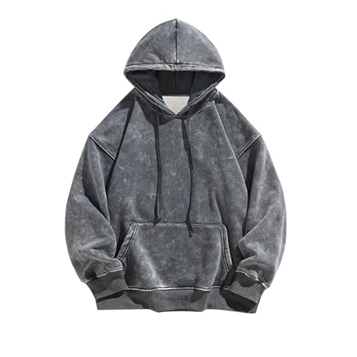 2025-Sweat A Capuche Homme Manches Longues- Sweat Grande Taille Vintage Casual Couleur Unie Ample Pullover Chic Confortable Oversize Passe-Partout Style Hip-Hop Effet Usé Streetwear