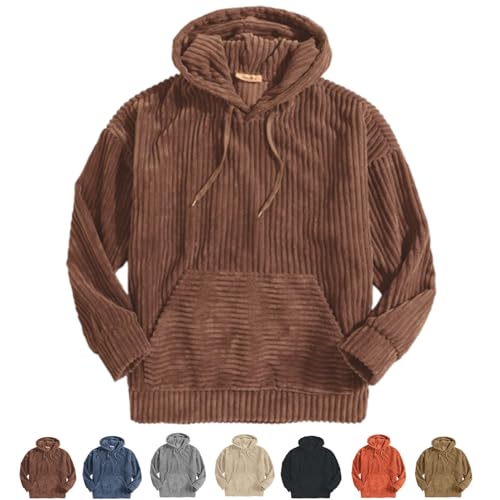 QKCQQTS Sweat à Capuche en Velours côtelé pour Homme, Sweat-Shirt à Capuche Vintage avec Cordon de Serrage, Pull à Capuche Vintage en Velours côtelé (Dark Brown,2XL)