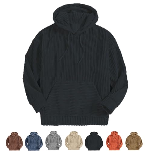 QKCQQTS Sweat à Capuche en Velours côtelé pour Homme, Sweat-Shirt à Capuche Vintage avec Cordon de Serrage, Pull à Capuche Vintage en Velours côtelé (Navy Blue,S)