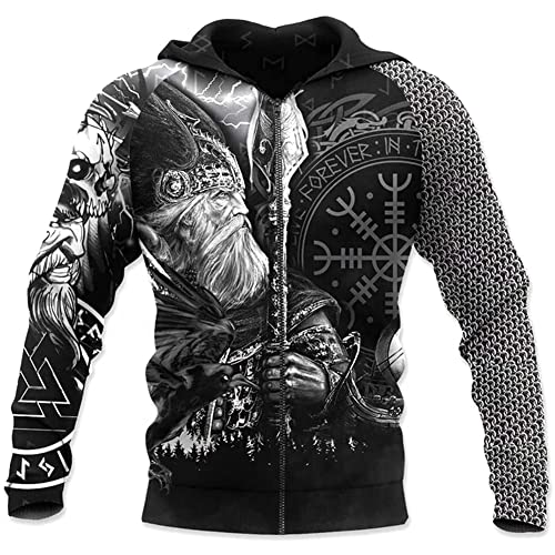 WLXW Sweat À Capuche Viking pour Homme, Sweat-Shirt Imprimé 3D De Tatouage Odin Vintage, Quake Et Loup Celtique, Veste De Hip-Hop De Rue Harajuku Mode Automne, Robe De Couple De Noël,Hoodie Zip,L