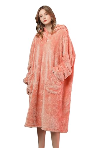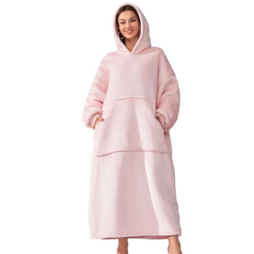 Michorinee Extra Longue Sweat à Capuche Couverture, Sweat à Capuche Femme Homme Pull Plaid Oversize en Polaire, Douce Chaud Sherpa Couverture à Capuche Cadeau Adulte avec Manches, Rose