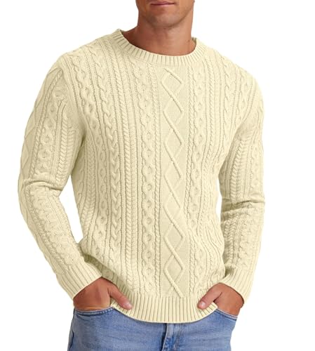 Hisir Pulls en tricot torsadé pour hommes, pulls d'hiver décontractés à col rond épais et chauds à manches longues, sweaters pullovers hauts pour hommes France, Beige 06, XXL