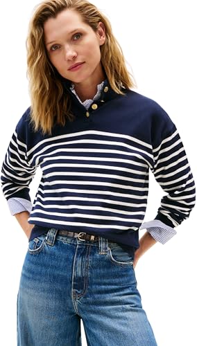 Tommy Hilfiger Pull Femme Jersey Gold avec Col Cheminée, Blanc (Placed Thin Navy STP Sweaters), XXXL