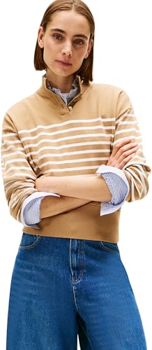 Tommy Hilfiger Pull Femme Jersey Gold avec Col Cheminée, Beige (Placed Thin Beige STP Sweaters), S