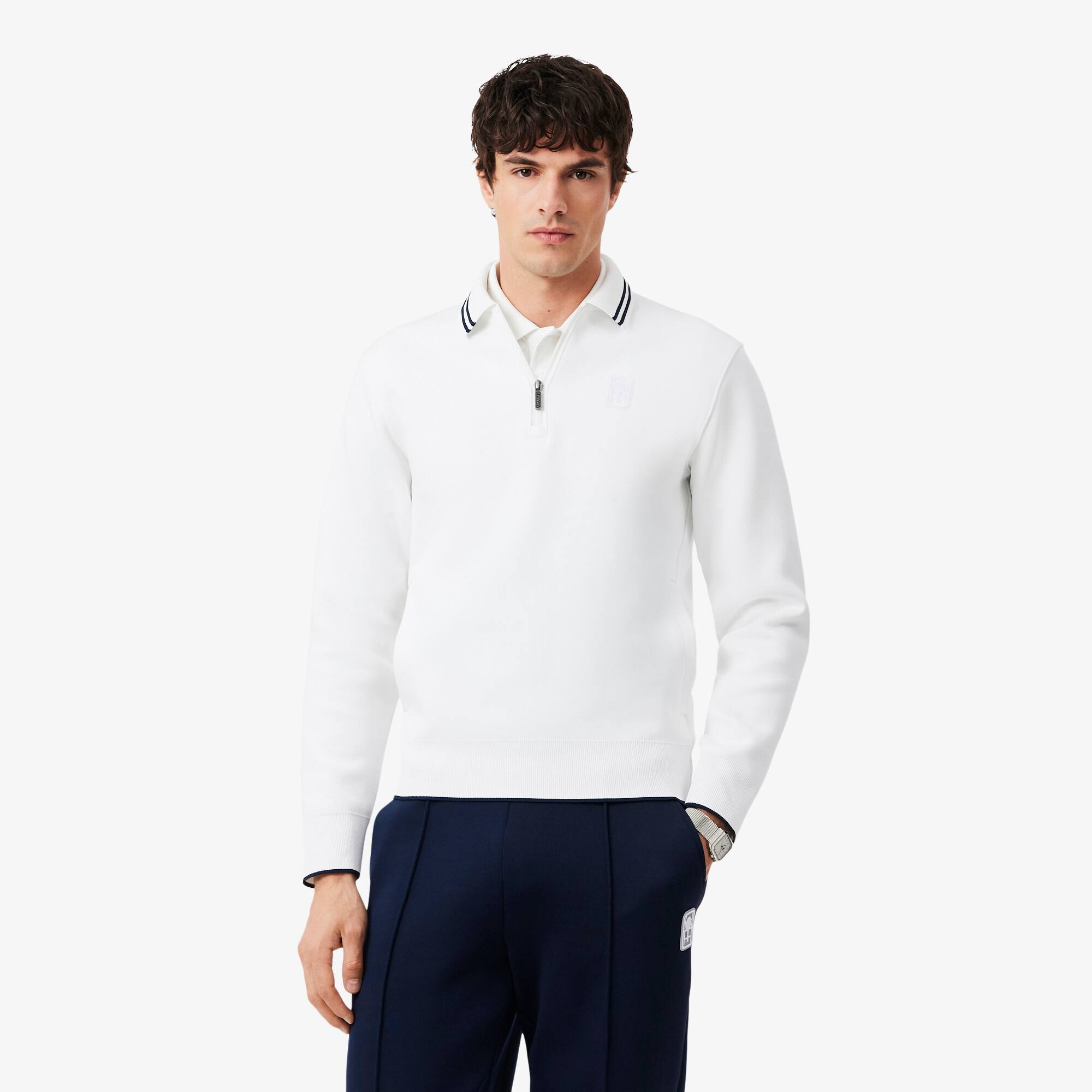 Lacoste Sweatshirt col polo zippé Tennis Héritage Taille XL Blanc