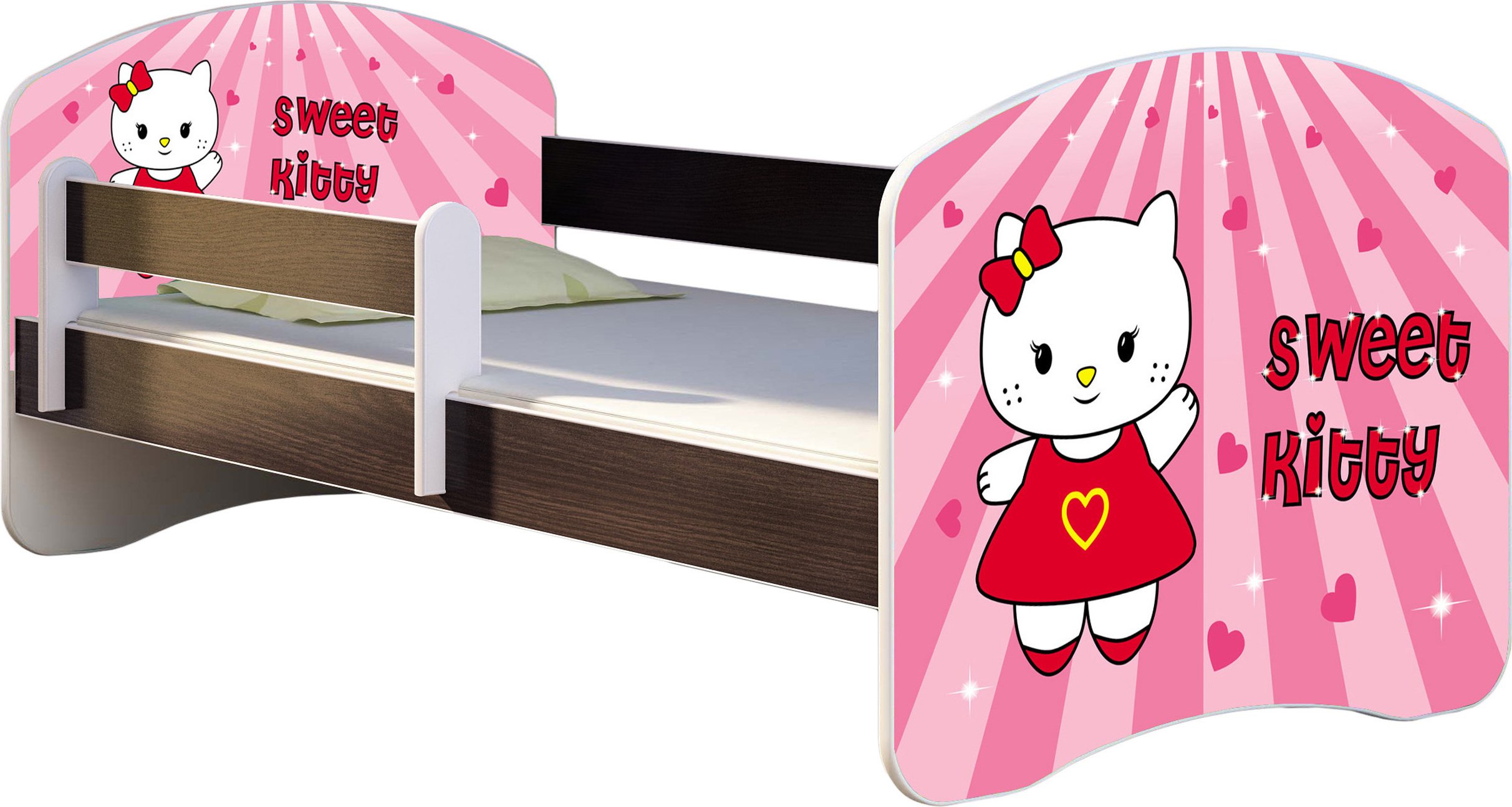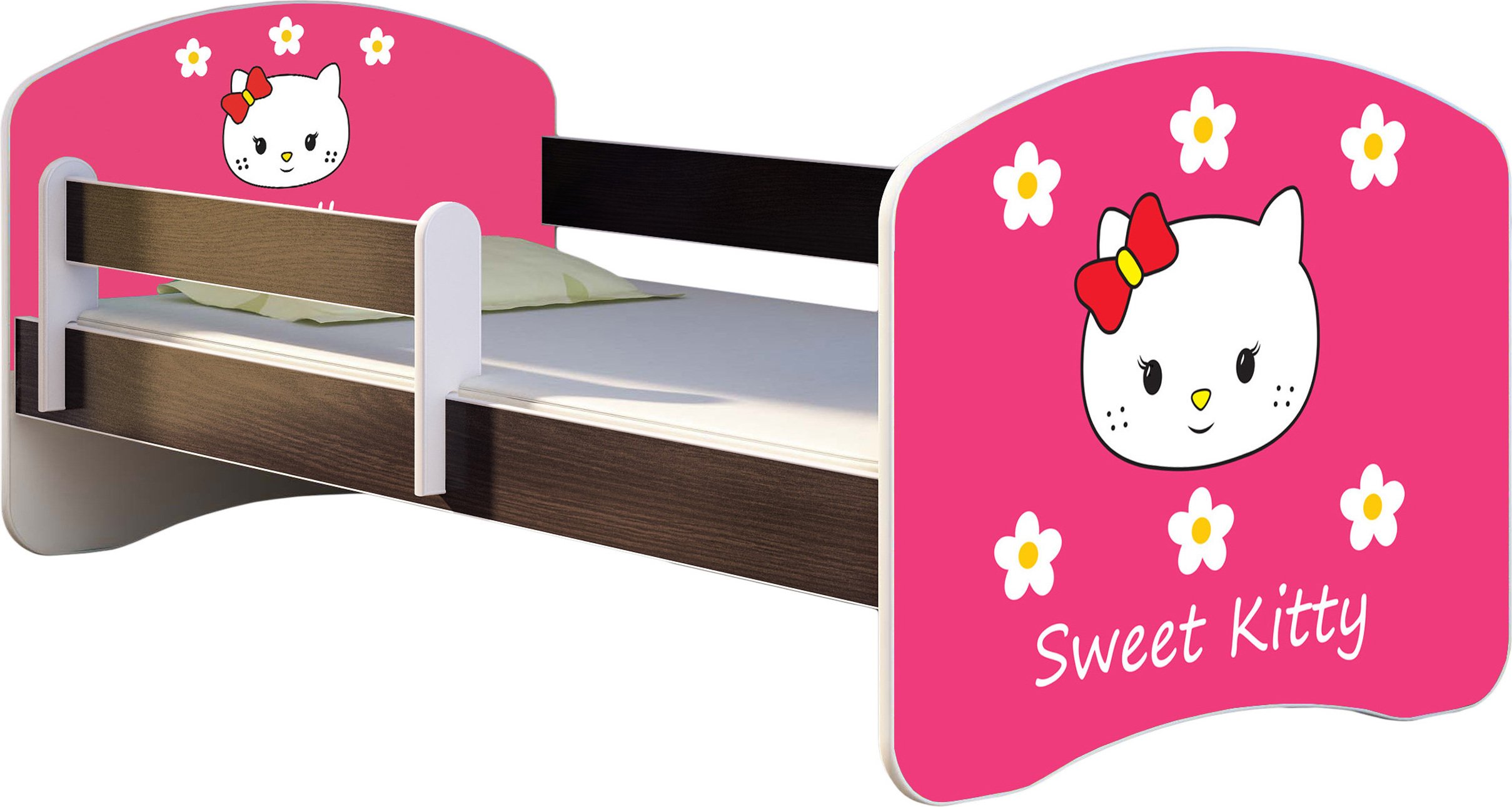 ACMA lit d'adolescent lit d'enfant lit junior set complet avec matelas sommier à lattes et protection contre les chutes wengé 16 Sweet Kitty 2 140x70