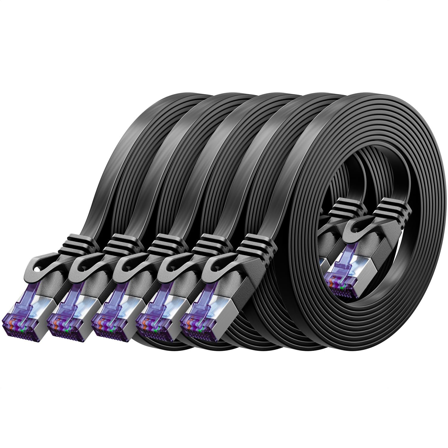 5x 1m Flat CAT7 Network Cable (CAT 7 with 10Gbps) Gigabit LAN - RJ45 Ethernet Short Flat Patch Cable - for Internet Switch Router Modem Patch Panel - Black