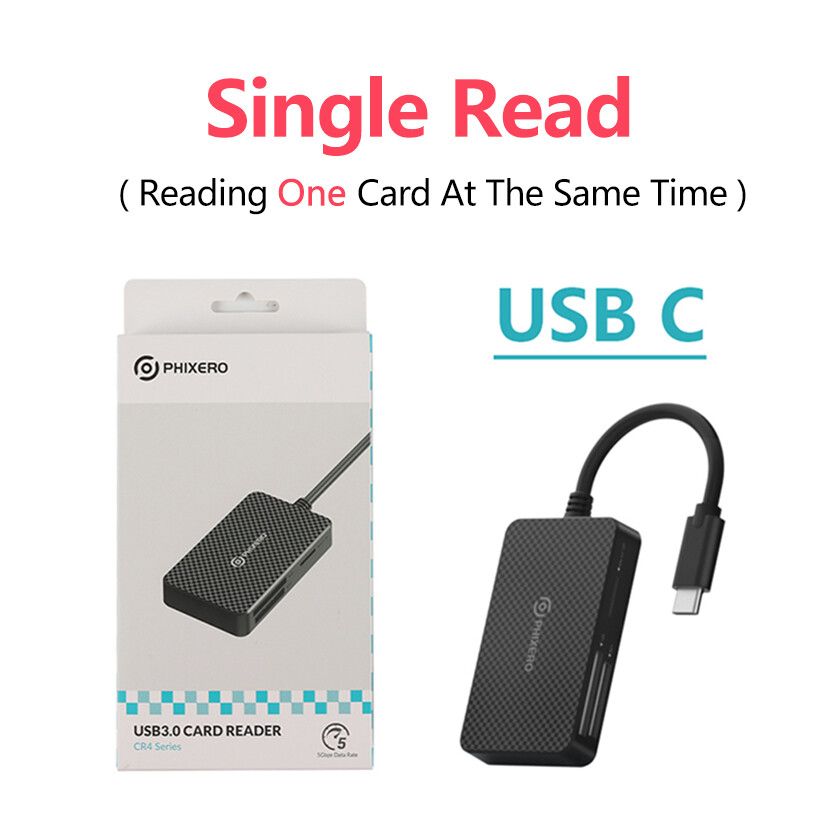PHIXERO-Lecteur de carte mémoire multi USB 3.0,2TB,4 en 1Micro SD TF CF MS,adaptateur Type C Microsd Stick Switch pour caméra PC - Type Single Read (USB C)
