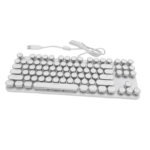 Asixxsix Clavier Mécanique, 87 Clé RVB Backlit Impermièrement Le Clavier de Jeu Mécanique du Chapeau Rond USB Blue Switch Gaming Clavier pour la Maison, Le Bureau, L'entreprise (White)