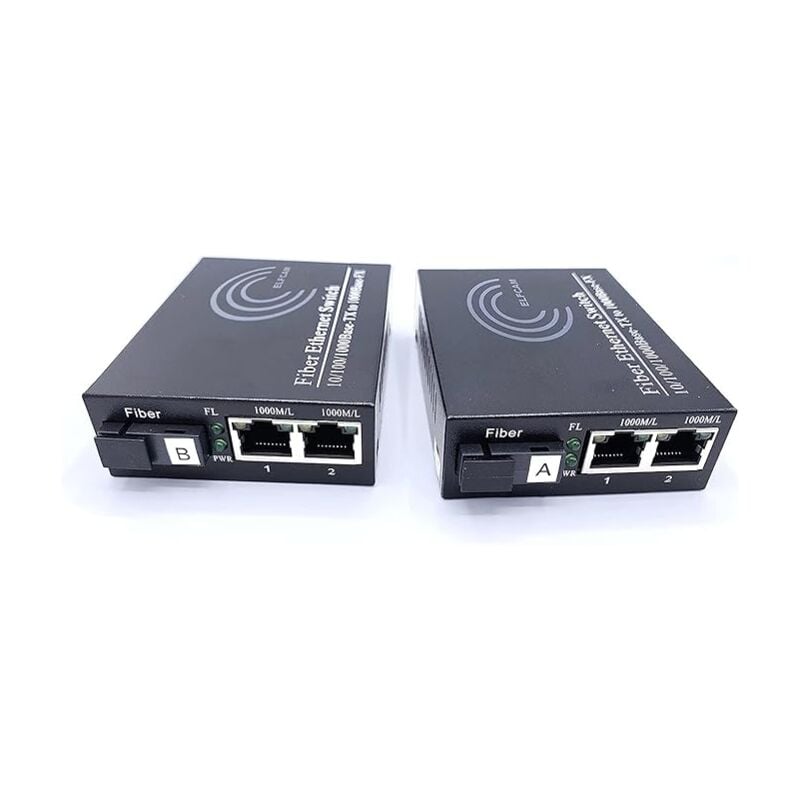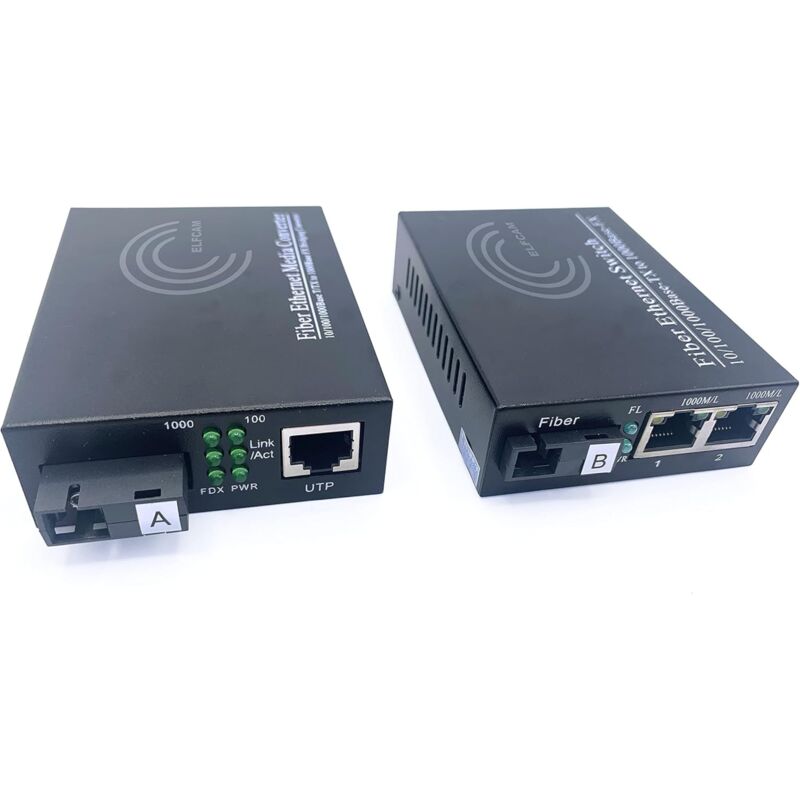 Lot de 2 Convertisseurs Fibre Optique Ethernet - sc Monomode, 1 Port sfp + 2 Port RJ45, Jusqu'à 20 km, Module sfp Inclus - Elfcam
