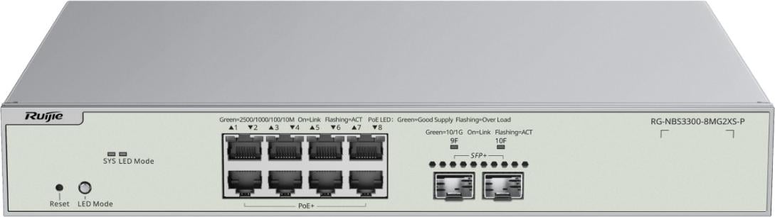 Switch Reyee Géré PoE Cloud Layer2 8x PoE MultiGigabit + 2x 10Gbps SFP+ 802.3af/at