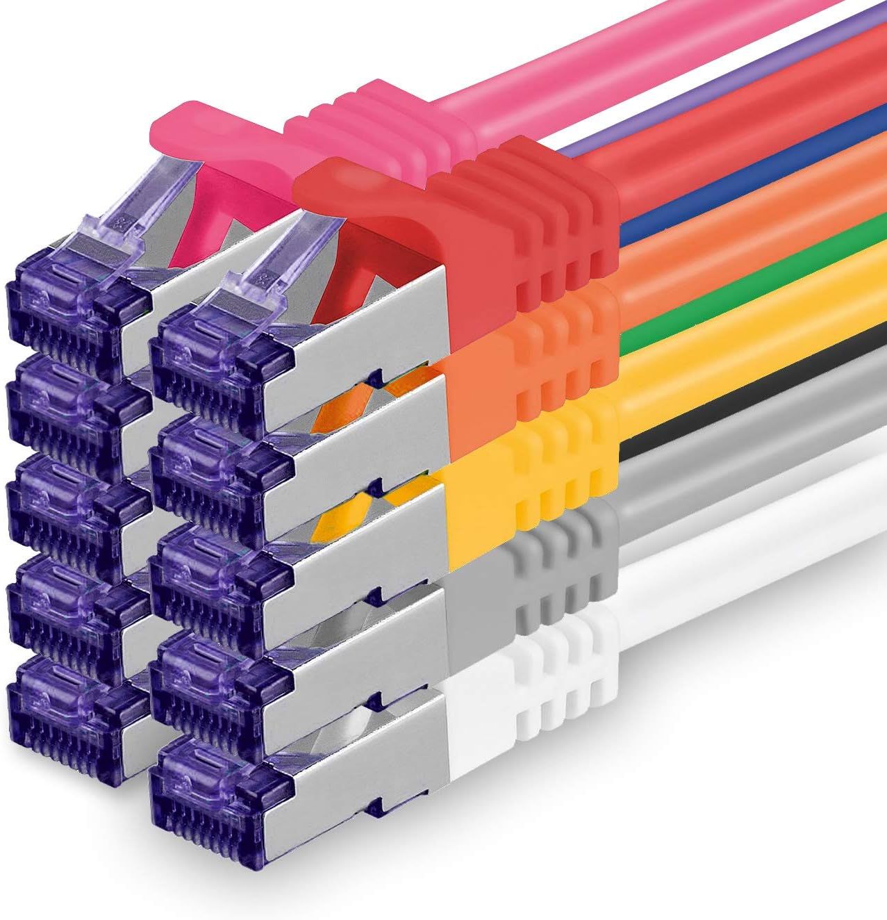 10 x 0.5 m CAT7-10 Gigabit Network Cable-Patch Cable RJ45 Ethernet Cable (SFTP PIMF LSZH CU)-for DSL LAN Switch Modem Router Patch Panel CAT7 CAT6 CAT5 Multi-Coloured