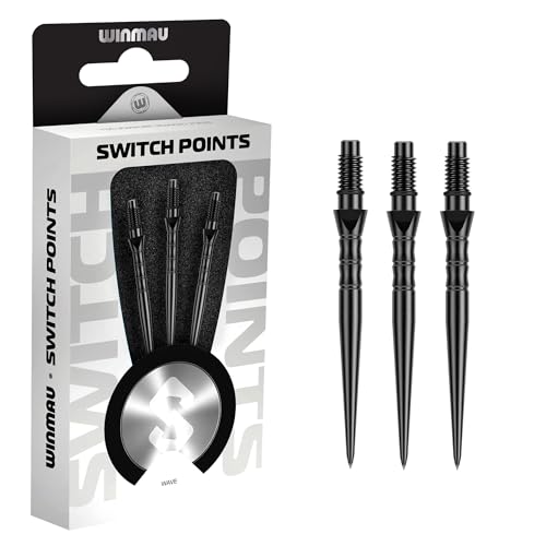 WINMAU - Points Switch - Pointe en acier au carbone - Mécanisme de changement rapide de filetage - 1 jeu par paquet - Groove noir effet 26 mm - Accessoire de fléchettes professionnel