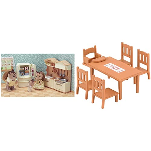 SYLVANIAN FAMILIES - La Ville - La Cuisine Aménagée - 5341 - Meubles et Accessoires Poupée - Mini Poupées & Le Village - La Table de Repas - 4506 - Meubles et Accessoires Poupée - Mini Poupées