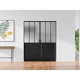 Vente Unique Porte coulissante double atelier avec système à galandage Noir et verre trempé 2 x H205 x L63 cm ARTISTO II