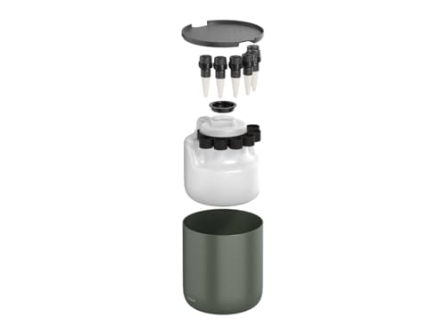 Fiskars Urban Plant Care Système d'Arrosage Automatique, Arrosage Automatique des Plantes, Réservoir de 4,4 l et 4 Cônes en Céramique, Acier Enduit, Vert Foncé/Noir, 1075319