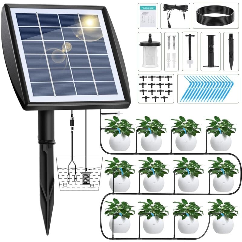 Yctze : Kit d'irrigation Goutte à Goutte Automatique Solaire Kit d'irrigation à à énergie Solaire 18V 10W Silicium Polycristallin Système 'arrosage Automatique à énergie ' à 'intérieur