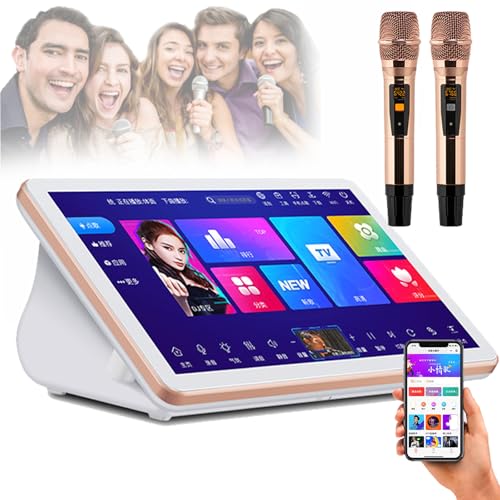 hKjPlvf karaoké avec 2 Microphones à réverbération, écran Tactile 4K de 18,5 Pouces, Double système pour karaoké,visionnage de Films,Jeux,Youtube, pour Les fêtes de Famille dans Les Bars,White-500G