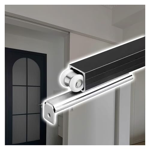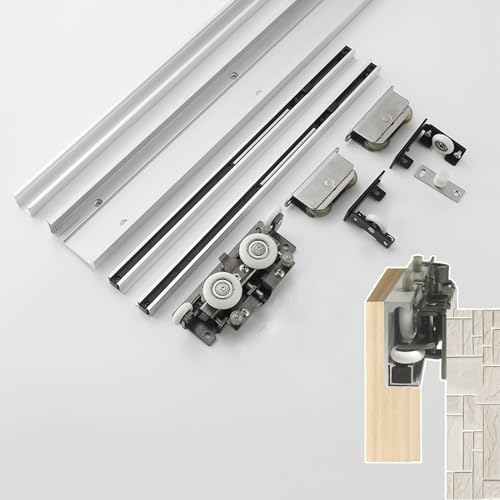 Kit de porte de poche – Système unique coulissant, rail de porte coulissante en aluminium et rouleaux, kit de quincaillerie pour porte de grange à fixation murale