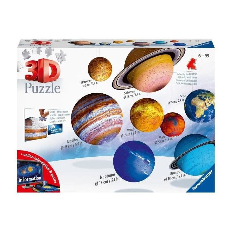 EXPLORA - Système Solaire - Puzzles 3D - 540221-173 Pièces - Niveau 5 - sans Colle Ni Ciseaux - Jeu de Construction - Maquette - Licence National Géographic - Educatif - Cadeau - À Partir de 8 Ans