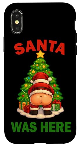 Santa Was Here T-Shirt Noël Drôle Santa Xmas Design Festif Coque pour iPhone XS Max
