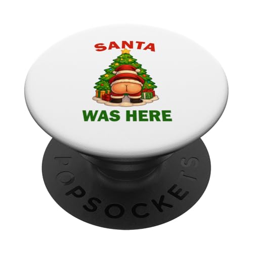Santa Was Here T-Shirt Noël Drôle Santa Xmas Design Festif PopSockets PopGrip Adhésif