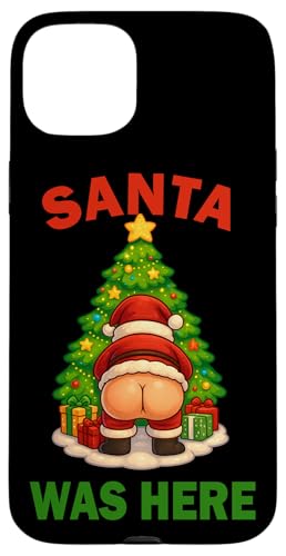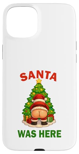 Santa Was Here T-Shirt Noël Drôle Santa Xmas Design Festif Coque pour iPhone 15 Plus