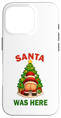 Santa Was Here T-Shirt Noël Drôle Santa Xmas Design Festif Coque pour iPhone 16 Pro
