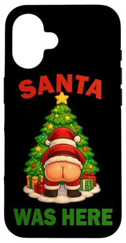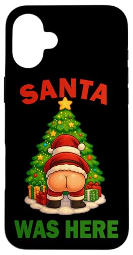 Santa Was Here T-Shirt Noël Drôle Santa Xmas Design Festif Coque pour iPhone 16 Plus