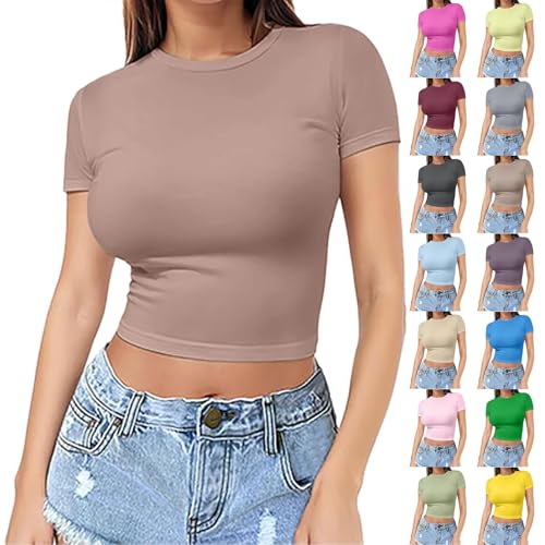 Tee Shirt Femme Col Rond Manches Courte, Tee Shirt Sport Femme Anti Transpirant, Tshirt Court Ventre T-Shirt Cintrée Haut Leger Thin Top Couleur Unie Tshirt Été Respirant T-Shirt Basique Haut