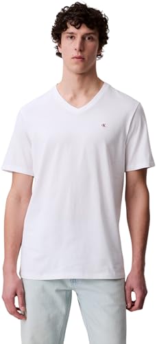 Calvin Klein T-Shirt Manches Courtes Homme Smooth Solid Tee avec Col en V, Blanc (Brilliant White), S