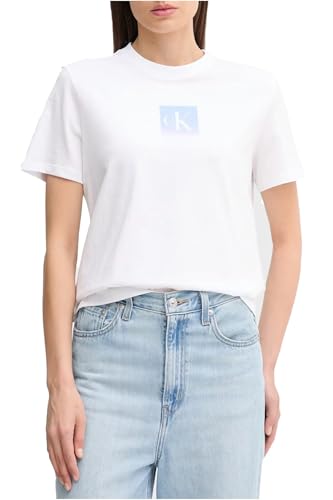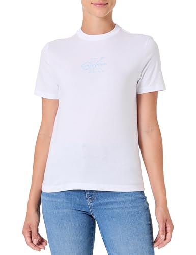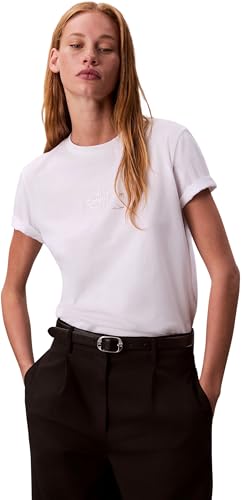 Calvin Klein T-Shirt Manches Courtes Femme Classic Logo Tee en Coton, Blanc (Brilliant White), M