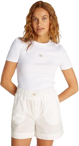 Calvin Klein T-Shirt Manches Courtes Femme CK Rib Baby Tee Court, Blanc (Bright White), M