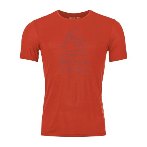 ORTOVOX 150 Cool MTN Protector TS M – T-Shirt en mérinos Confortable et Durable avec Effet rafraîchissant pour Les randonnées alpines – Rouge – Homme – XL