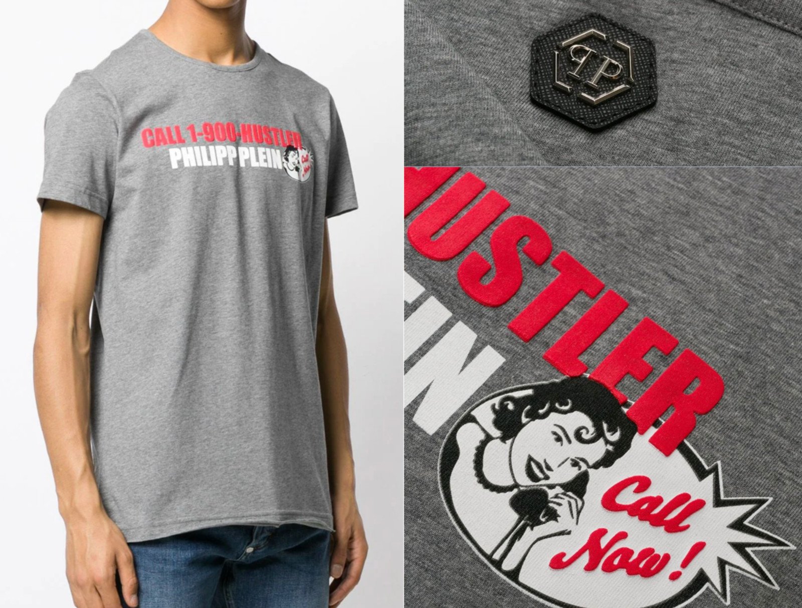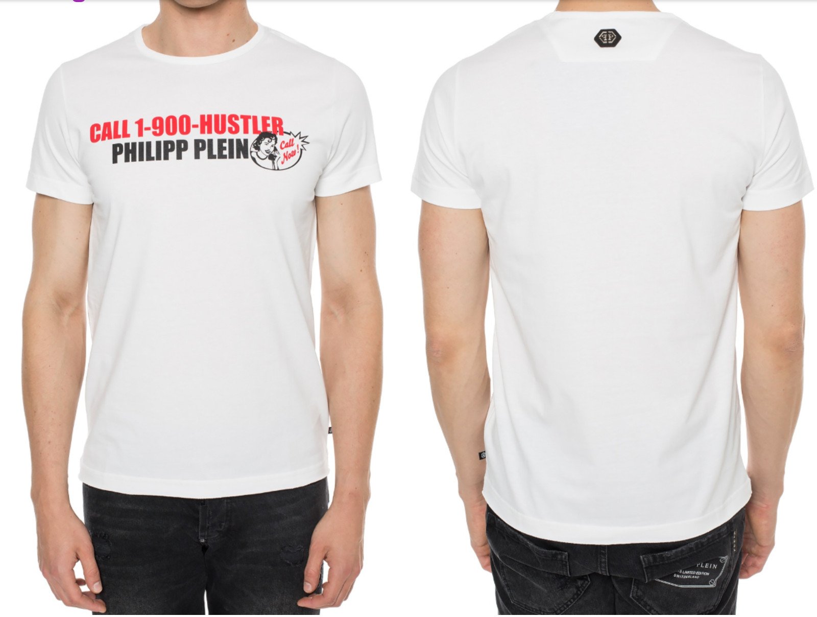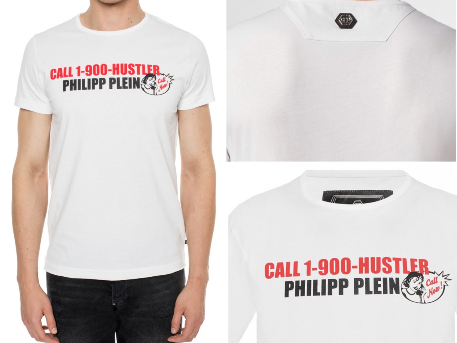 Philipp Plein Platinium Cut CALL HUSTLER Logo T-Shirt Col Rond Top 3XL