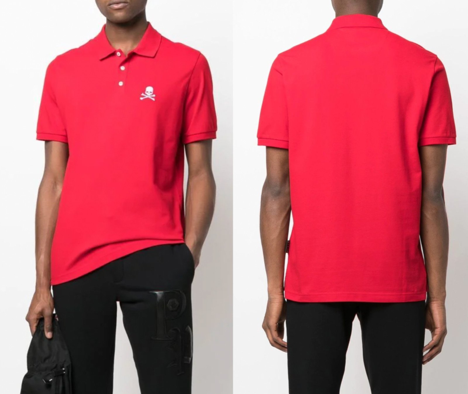 Philipp Plein Shirt Polo Ss Tête de Mort Logo Chemise Polo T-Shirt Neuf L.