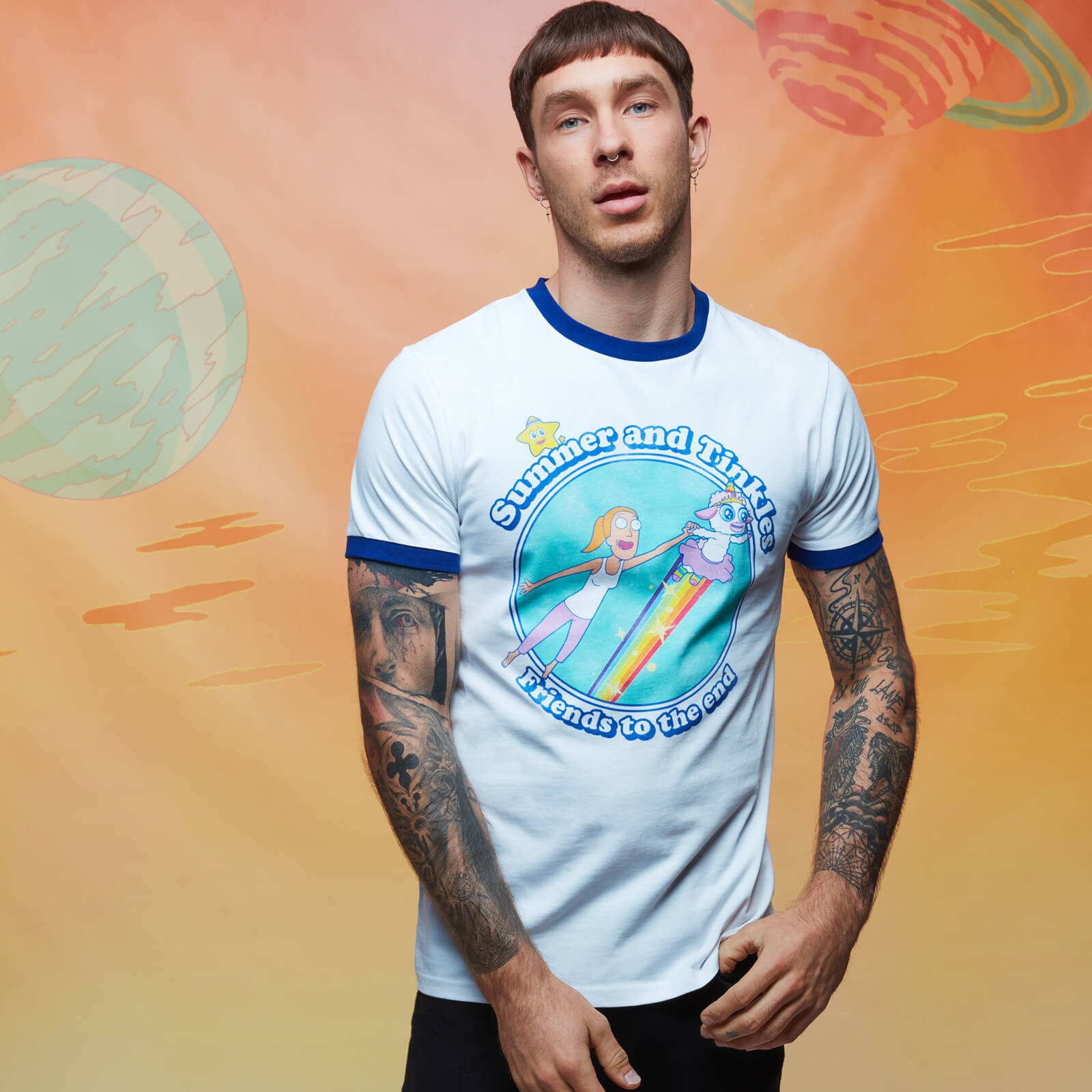 T-shirt - Rick and Morty Summer & Tinkles Ringer - Blanc / Bleu - XXL