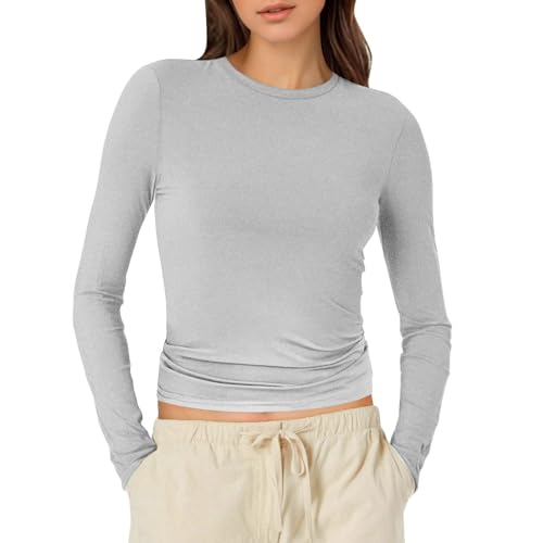 T-shirt basique à manches longues pour femme - T-shirt à manches longues - Vêtement de compression - T-shirt thermique à manches longues - Col rond - Élégant - Haut côtelé - T-shirt basique - Tailles