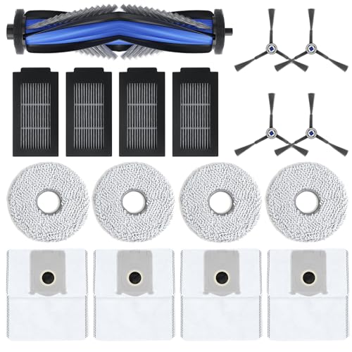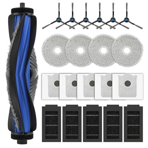 Geoviizon Lot de 17 accessoires pour robot aspirateur Ecovacs Deebot T50 Pro Omni / T50 Omni /T50 Max /T50 Max Pro/T50 Pro. 1 brosse principale, 4 lingettes, 4 sacs à poussière, 4 filtres, 4 brosses