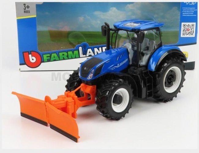 1:50 BURAGO New Holland T7.315 Tractor With Cultivator Trailer 2016 Blue BU31678